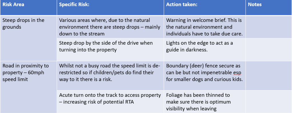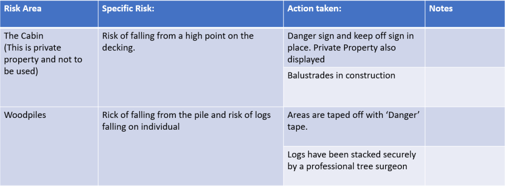 Please read the following risk assessments, we have tried to mitigate risk wherever possible but risk will always be present in some shape or form and we cannot beheld responsible.